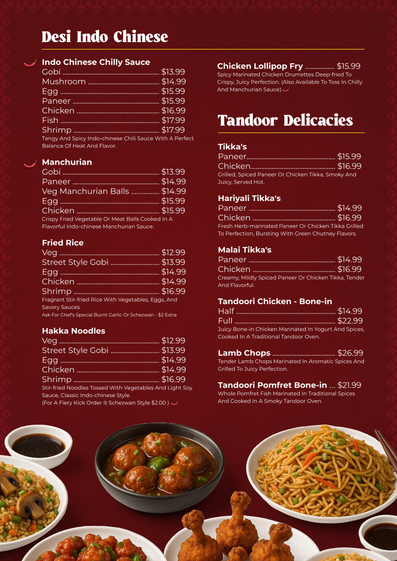 If you're craving a vibrant and flavorful dining experience, look no further than Social Desiii Indian Bar & Grill Menu. Nestled in the heart of N Houston Levee Rd, Memphis, TN, this restaurant offers a perfect blend of traditional Indian spices and modern grill techniques. From savory tandoori dishes to mouth-watering biryanis, the menu features a variety of options that cater to every taste, whether you're a fan of spicy curries or a fan of milder, yet equally satisfying flavors. The grill selections are a highlight, with tender meats and fresh vegetables marinated in rich, aromatic spices. Whether you're enjoying a casual dinner or celebrating a special occasion, Social Desiii's menu promises to deliver a memorable and satisfying meal. With every bite, you're in for a true taste of India, all served in a welcoming and relaxed atmosphere.
